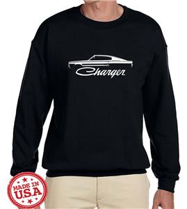 - From the creators at Maddmax Design comes this brand new, custom made sweatshirt of the Charger. Please check the drop down boxes above for the different sizes and shirt colors available. Shirt features 50% cotton 50% polyester for our designs.