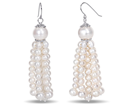 Dance the night away with your special someone in these gorgeous pair of lustrous sterling silver tassel earrings from Amour Collection. The gentle swaying of pearl tassels across your face looks captivating enough for turning heads towards you. They feature creamy white freshwater pearls (4.5-6.5 mm) that dangle, crowned by a larger round pearl (10.5-11 mm) and look great when worn with shoulder-baring necklines. Earrings are comfortably secured with hook closures for an easy slip onto your ears.