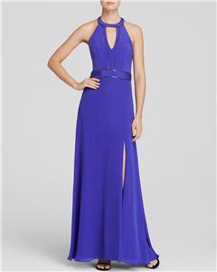 NICOLE MILLER KEYHOLE CHAIN TRIM SLIT FRONT DRESS GOWN $440 CA10067