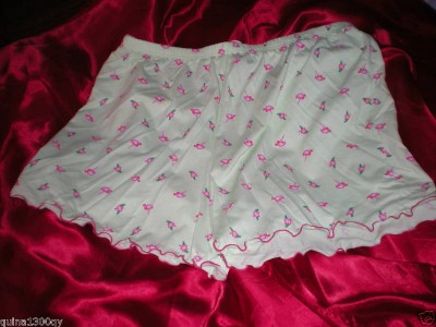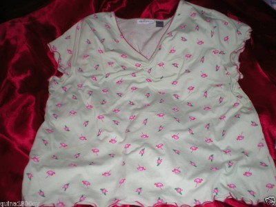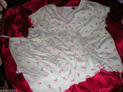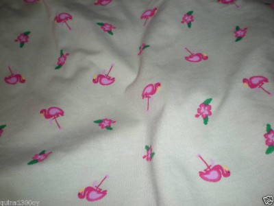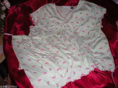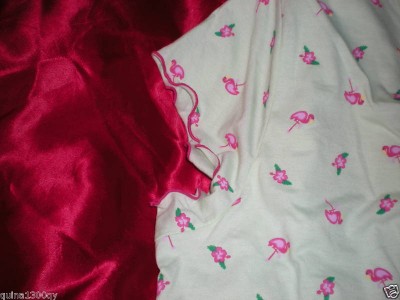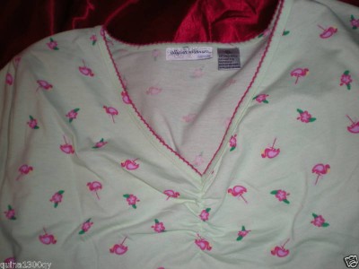 This auction is for a COOL MINT GREEN PAJAMA top and bottom short set. The detailing............. Has 2 tones of pink flamingos and summer flowers all over the top and bottom....Both are trimmed with a soft ruffle lined with pink