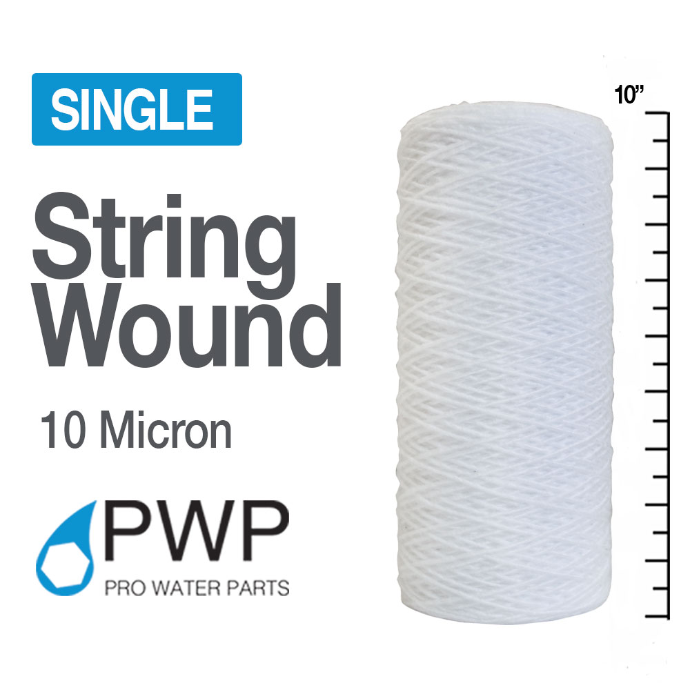String Wound Sediment Water Filter Cartridges 10x4.5 10 Micron Single