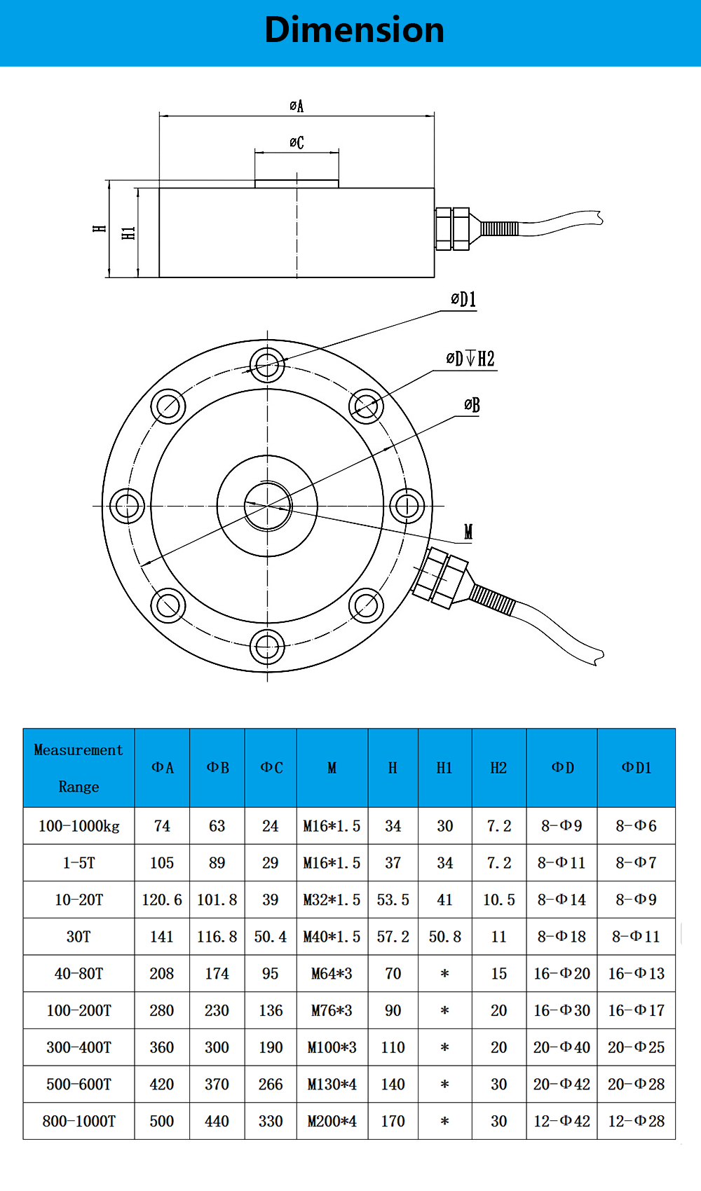 Sensitivity: 2.0±0.05mv/v