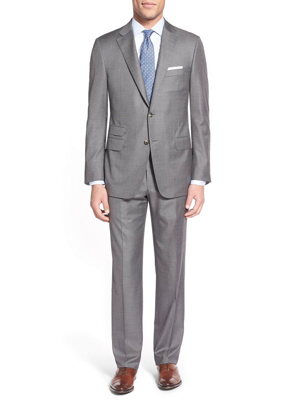 Luciano Natazzi Year Round Use Suit. A modern business suit for all season. JACKET: 2 button, single breasted, side vents, 4 pockets 3 with flaps, lapel notched, 4-button vented sleeves with working buttonholes. Quality full lining. PANTS: Flat Front dress pants, lined to just below knee 2 back pockets with buttons, length unfinished, inside waistband for reinforcement, trousers come in a 6" drop. The waist can be altered up to 2 inches in or out. Hand Tailored. - Constructed with the finest detailing and highest quality with top finishing. 65% Poly 35% Viscose. Dry clean, Imported, Made in PRC