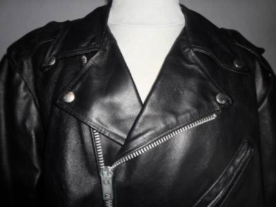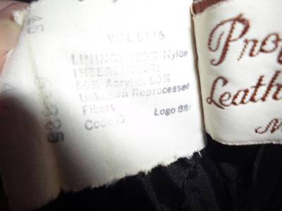 From Sears. Thick Steerhide Leather. Heavy Metal Zippers, all in good working condition. Quilted Lining.