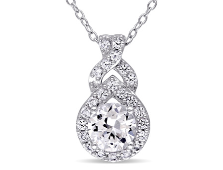 Express your love and commitment with this exquisite Amour Collection Created White Sapphire Infinity Halo Pendant. Crafted in sterling silver, this elegant pendant features round-cut (6.5mm) and (1.5mm) created white sapphires gemstone. This attractive pendant is hung on an 18-inch cable chain and is secured with a spring ring clasp.