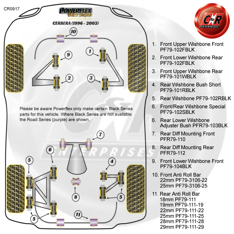 To help identify the correct Powerflex Bush(es) you require, please refer to the location diagram further down the listing.