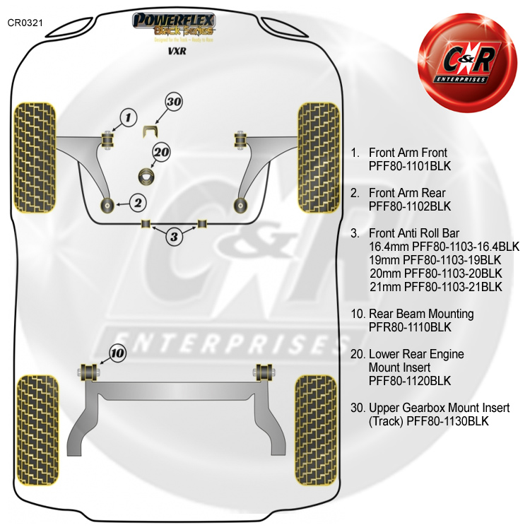 To help identify the correct Powerflex Bush(es) you require, please refer to the location diagram further down the listing.