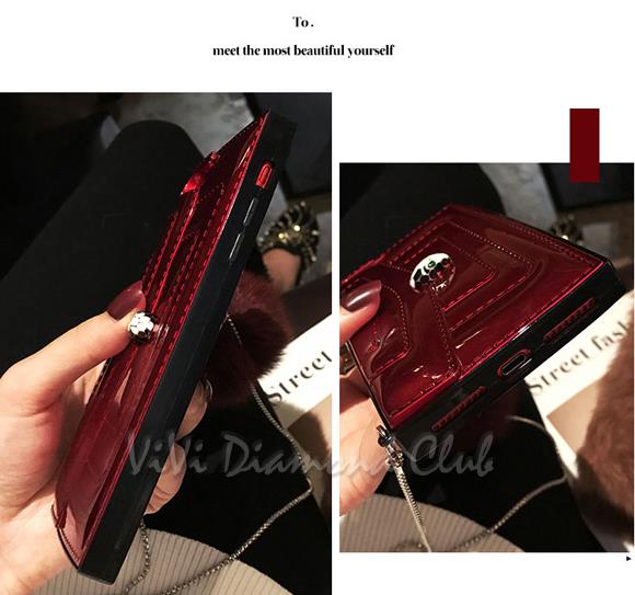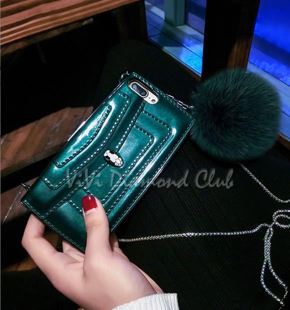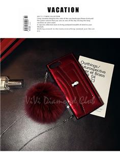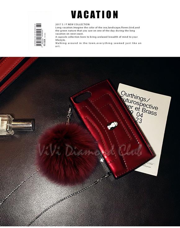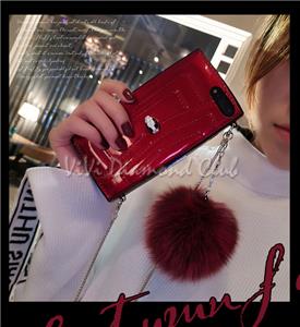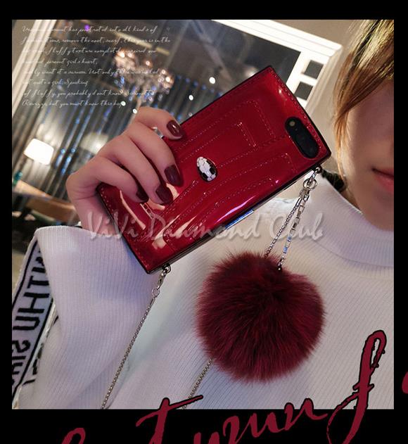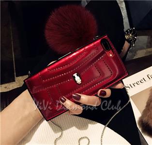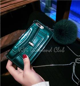 ***This auction is for ONE (1) Fashion Patent Leather TPU Crossbody Handbag Fur Ball Chain Case Cover For Apple iPhone X/ 6/ 6s/ 6 Plus/ 7/ 7 Plus/ 8/ 8 Plus ***