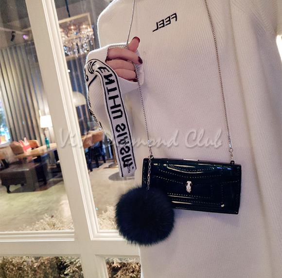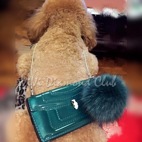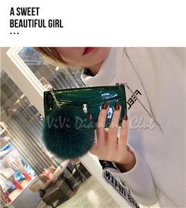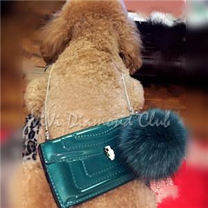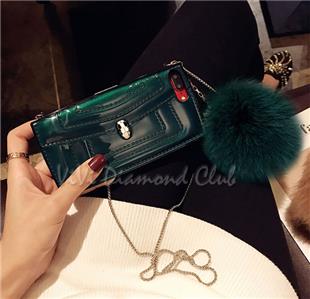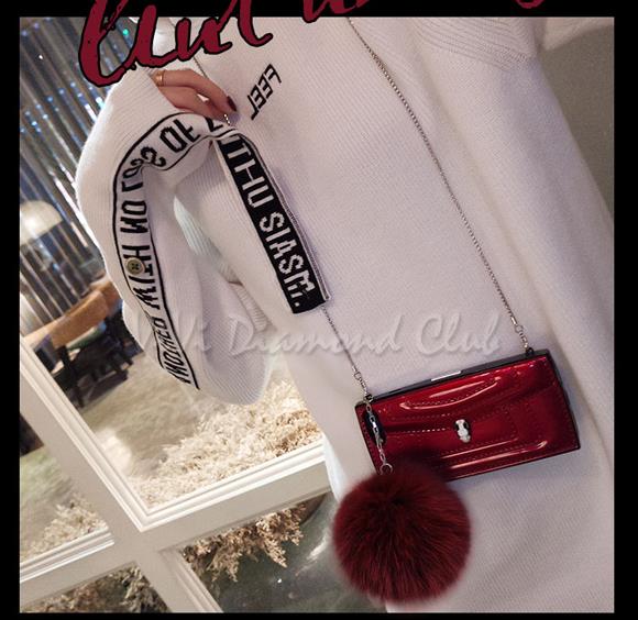 - Fashion Patent Leather Handbag with detachable Chain Strap & Fur Ball Charm design case.