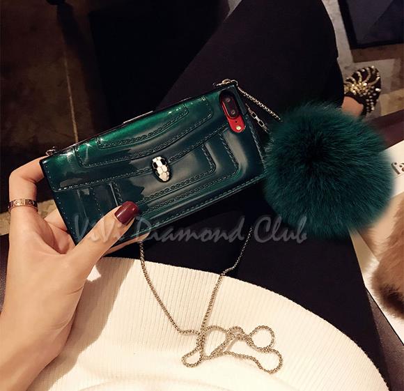 Fashion Patent TPU Crossbody Bag Fur Ball Chain Case Cover For Apple iPhone X/ 6/ 6s/ 6 Plus/ 7/ 7 Plus/ 8/ 8 Plus