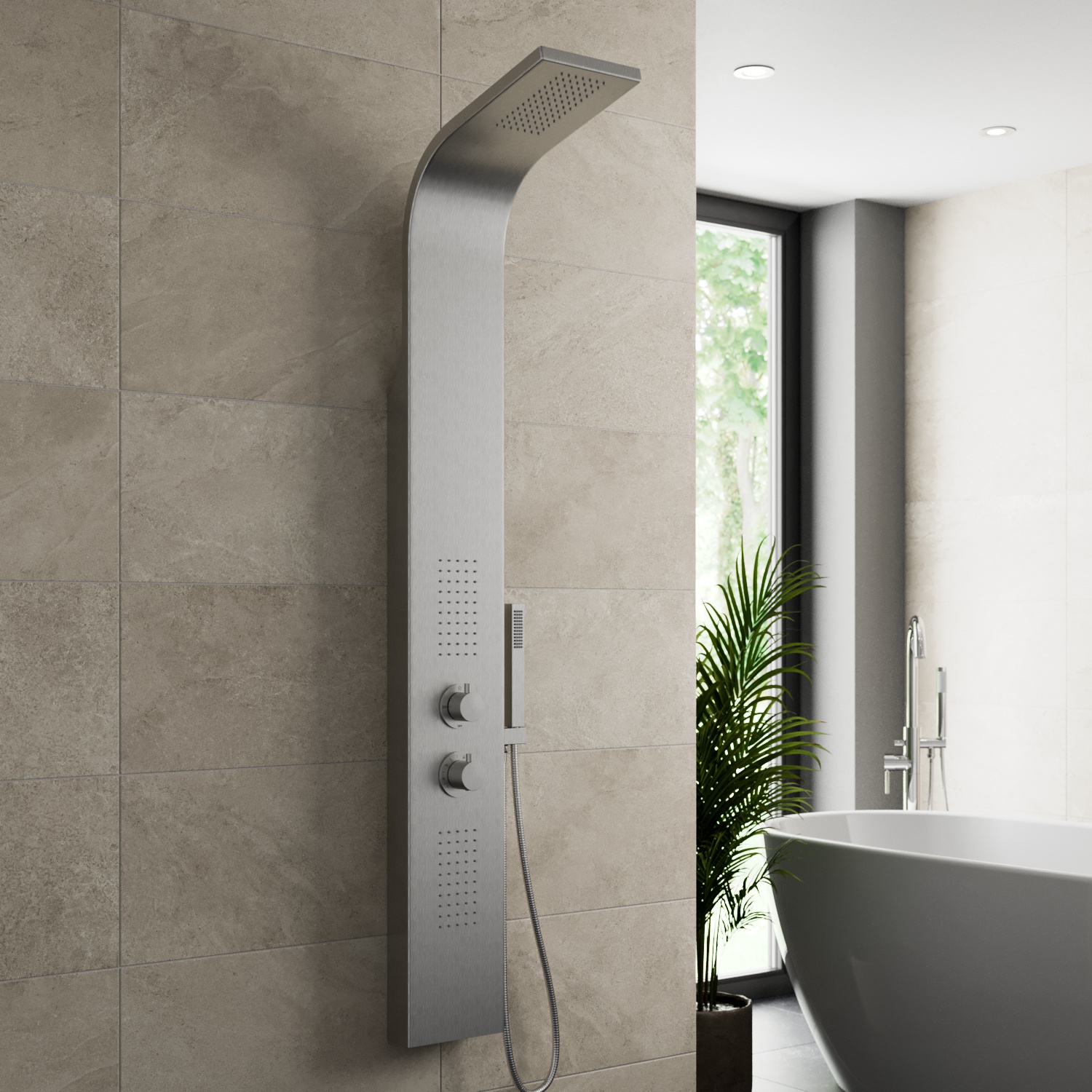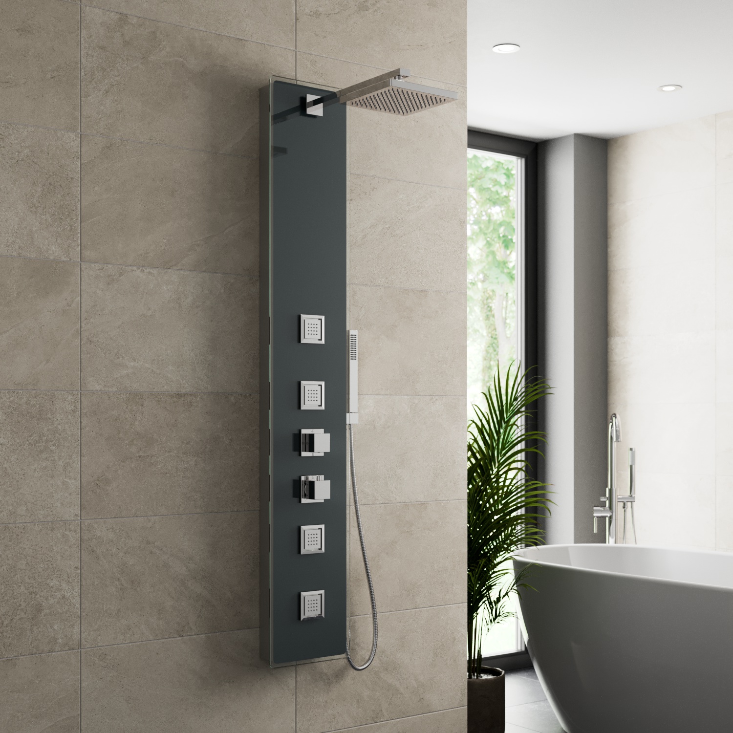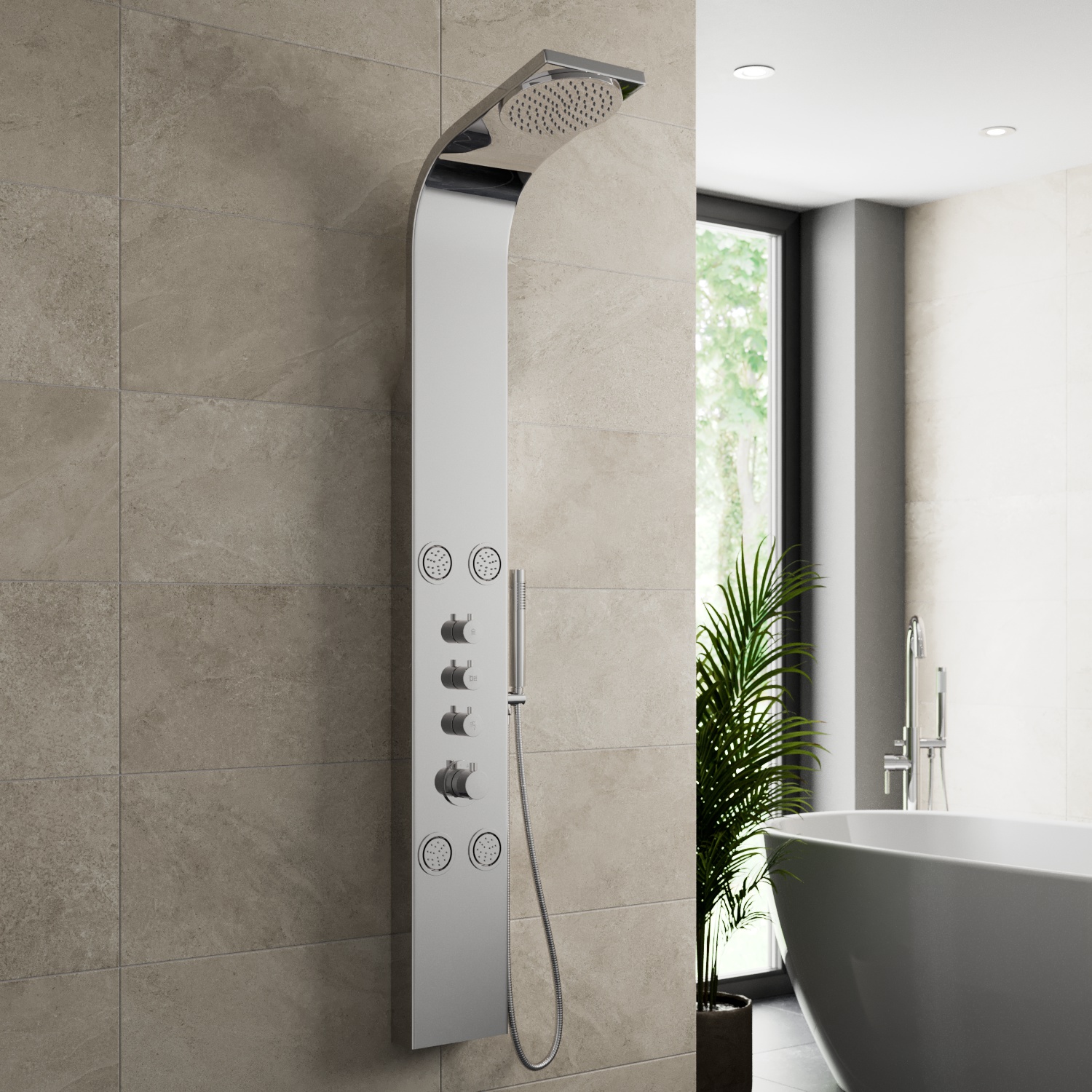 Shower towers have been designed to give you a tranquil spa-like showering experience whilst creating a statement piece for your bathroom, all without the hefty price tag. The stylish panel hides all pipework and fixtures, creating a neat and minimalistic look with anti-scald technology to give you a shower that is safer for the whole family. Shower towers feature a large luxury overhead drencher, revitalizing body jets, and a practical hand shower that is all cleverly incorporated into one panel.