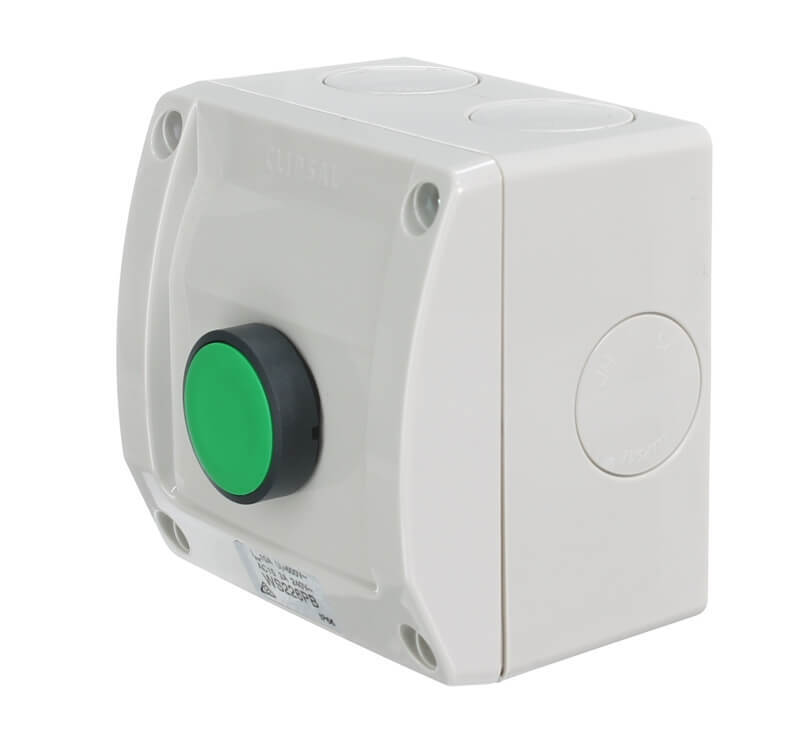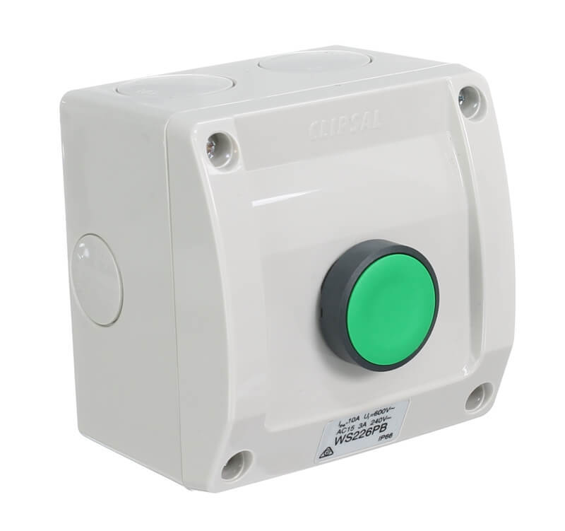 The Clipsal WS226PB-RG Push Button Switch is suitable for virtually any external application. The impact resistant base and cover will survive the hardest knocks in almost any installation. The two sections are sealed with a co-injection gasket. The range provides ample conduit entries and is suitable for side entry from a vertical duct. Its compact size means it is aesthetically pleasing and suits installations from residential electric gate opening, outdoor lighting to small external appliance control.
