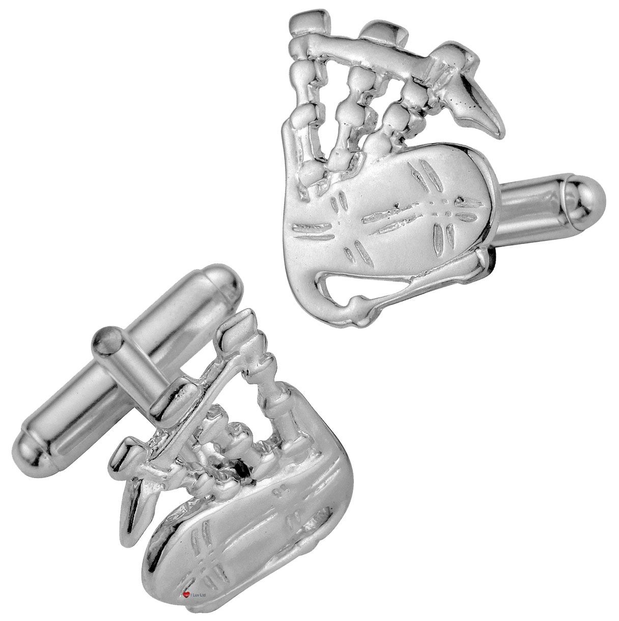 Cufflinks in Sterling Silver with Scottish Bagpipes in Open Design