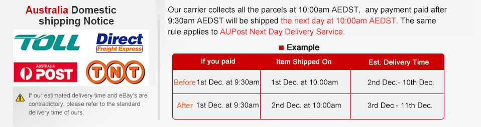 ● All items are double checked the condition and packing before shipping, please check the parcels carefully when they arrive and refuse to sign the package and open the shipping damage case with shipping company immediately if there is something wrong with the parcel.