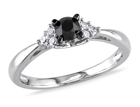 Fulfill the promise of a forever with this appealing Amour Collection Engagement Ring. Crafted in shimmering sterling silver, this enchanting ring features a round-cut, prong-set black diamond at the center with six round-cut, prong-set diamonds (G-H, I3) placed on the sides in a triangular pattern. Polished to a brilliant shine, this exquisite ring will represent the purity of your relationship.