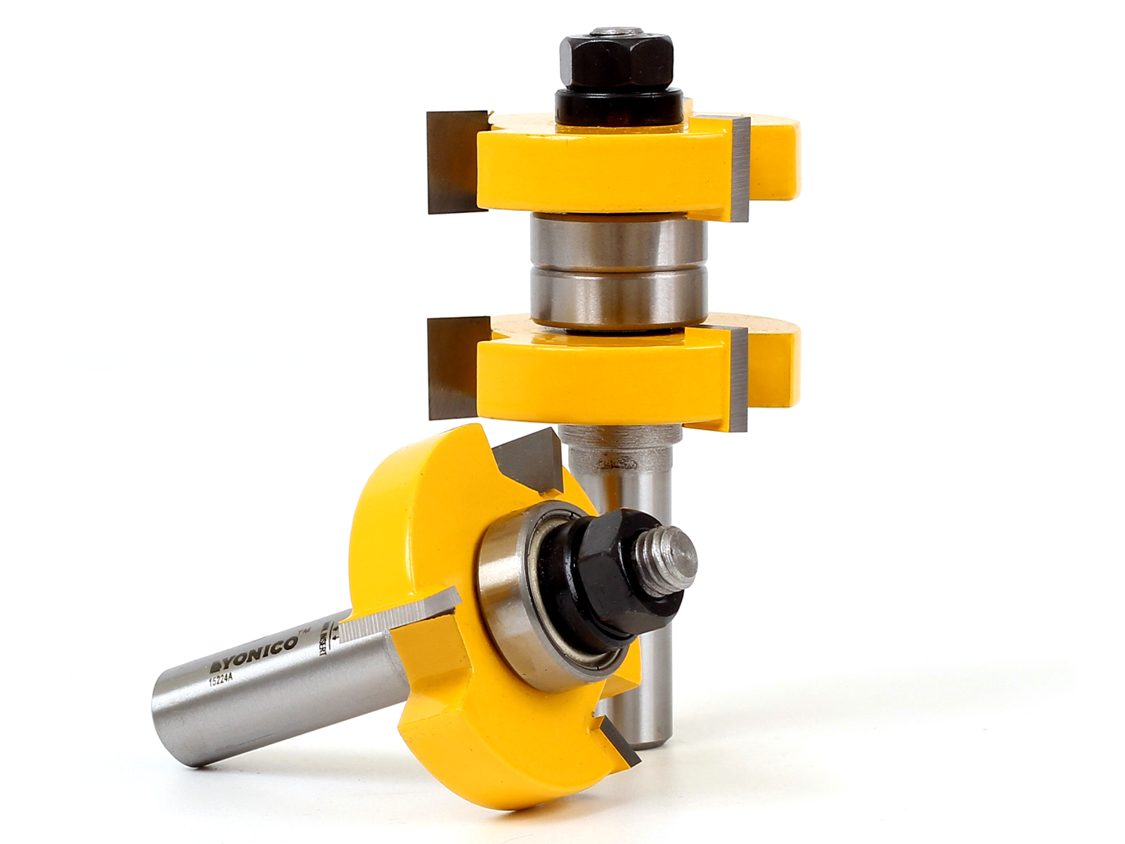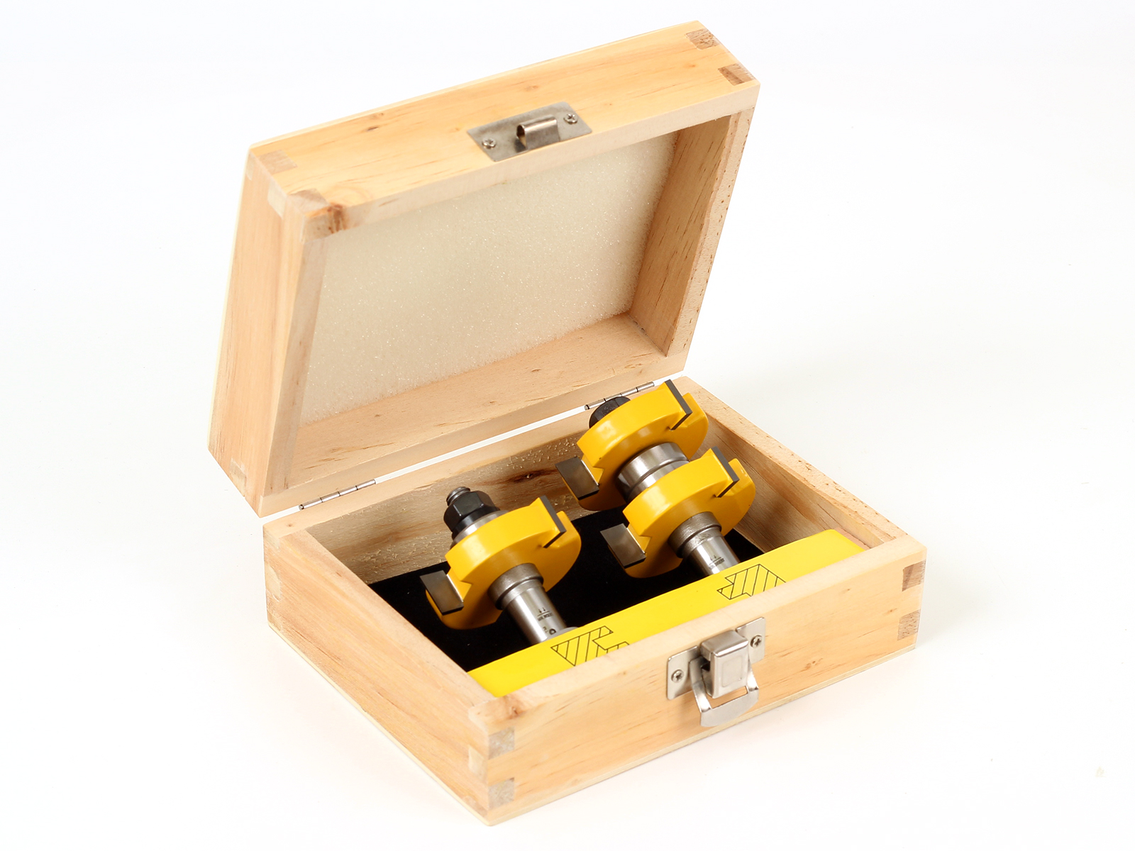A tongue and groove joint is the ideal way to create flat, even joints for flooring, wainscoting, panels and tabletops. Tongue and groove router bits will cut the 2 mating profiles for this easy to make woodworking joint with ease and with a simple setup. This joint also provides a lot of gluing surface as well as aligning ease. Tongue and groove bits can take quite a big bite out of the wood, so using these bits in a router table is strongly recommended. Align the bearing with your fence using a straight edge. Make multiple passes increasing the cutting depth by 1/8" for each pass until you achieve full depth. Even though some smaller tongue and groove bits can be utilized in a hand-held router the stability of a table will help keep the joint perfectly square. These high quality router bits will serve you well for many projects. For best results, use with solid wood only.