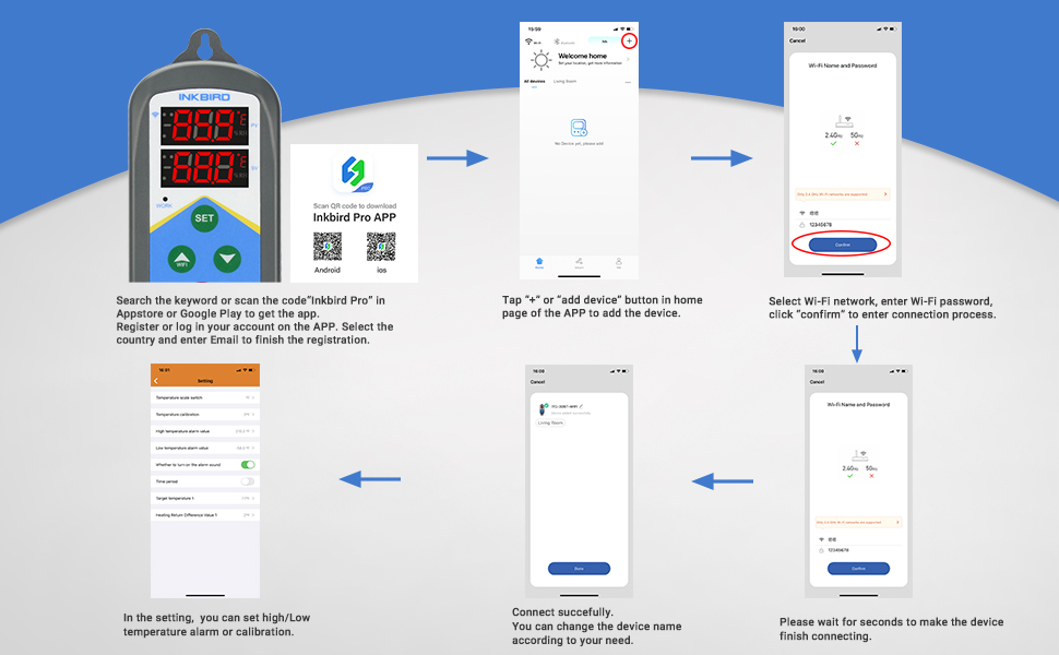 【APP Features】Temp graphs, alarms, ℃/℉ switch & timer. All can be set through the Inkbird Pro app.