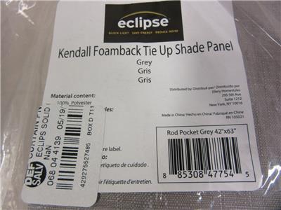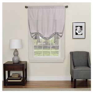 Add style and function to your décor with Eclipse Kendall Window Tie-up Shade. Eclipse curtains and accessories offer a unique blend of fashion and function for any home décor. The innovative, white foam-backing is applied to the fabric and allows you to enjoy all of the light-blocking, noise reducing and energy saving benefits, while providing the same fashionable style and elegance of naturally flowing curtains. Sold as a single rod pocket tie-up shade measuring 42 inches wide. Pieced panel is 63 inches long when fully extended. Top portion measures 16 inches long, bottom portion is approximately 10 inches long when tied up, but can vary based on styling. 3 inch rod pocket; 1 to 1.5 inch rod recommended for maximum styling. Subtle texture adds style and dimension. Coordinating curtain panels and curtain rod sold separately. 100% Polyester. Machine washable.
