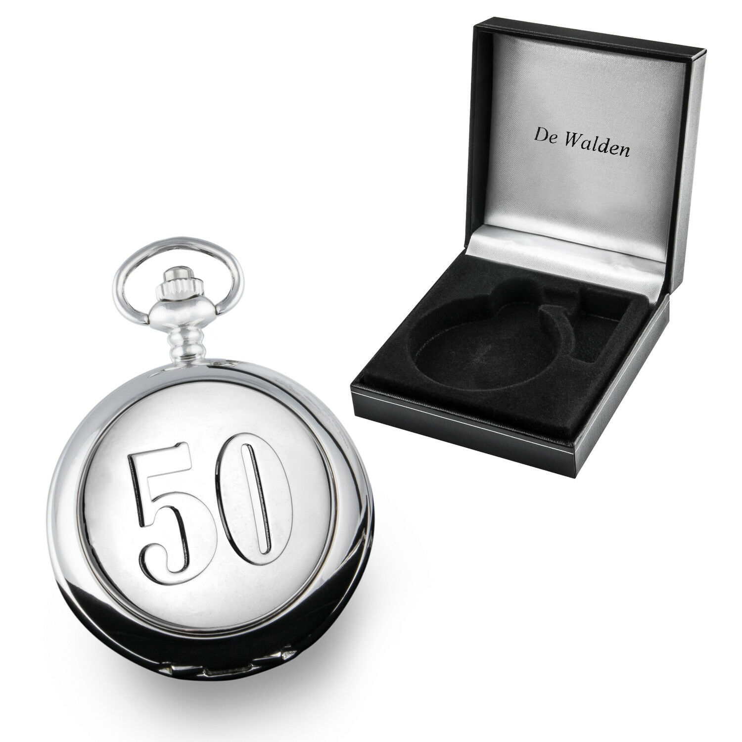 This is a high quality Quartz Full Hunter Pocket Watch with Albert Chain and jacket clip which comes with in its own quality hinged velour and satin lined Gift Box. The front of the watch case has a '50' feature, adding further quality and interest to what is already a very special 50th Anniversary gift. This would be an ideal gift for your Dad, Grandad, Husband or friend for their 50th Wedding Anniversary.