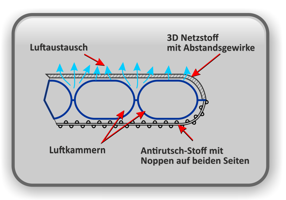 - gleicher Luftdruck sorgt für eine gleichmäßige Druckverteilung im Sitzbereich;