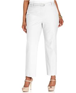NEW Charter Club White Belted Tummy Slimming Curvy Fit Ankle Pants Slacks Women's Plus 24W NWT $75