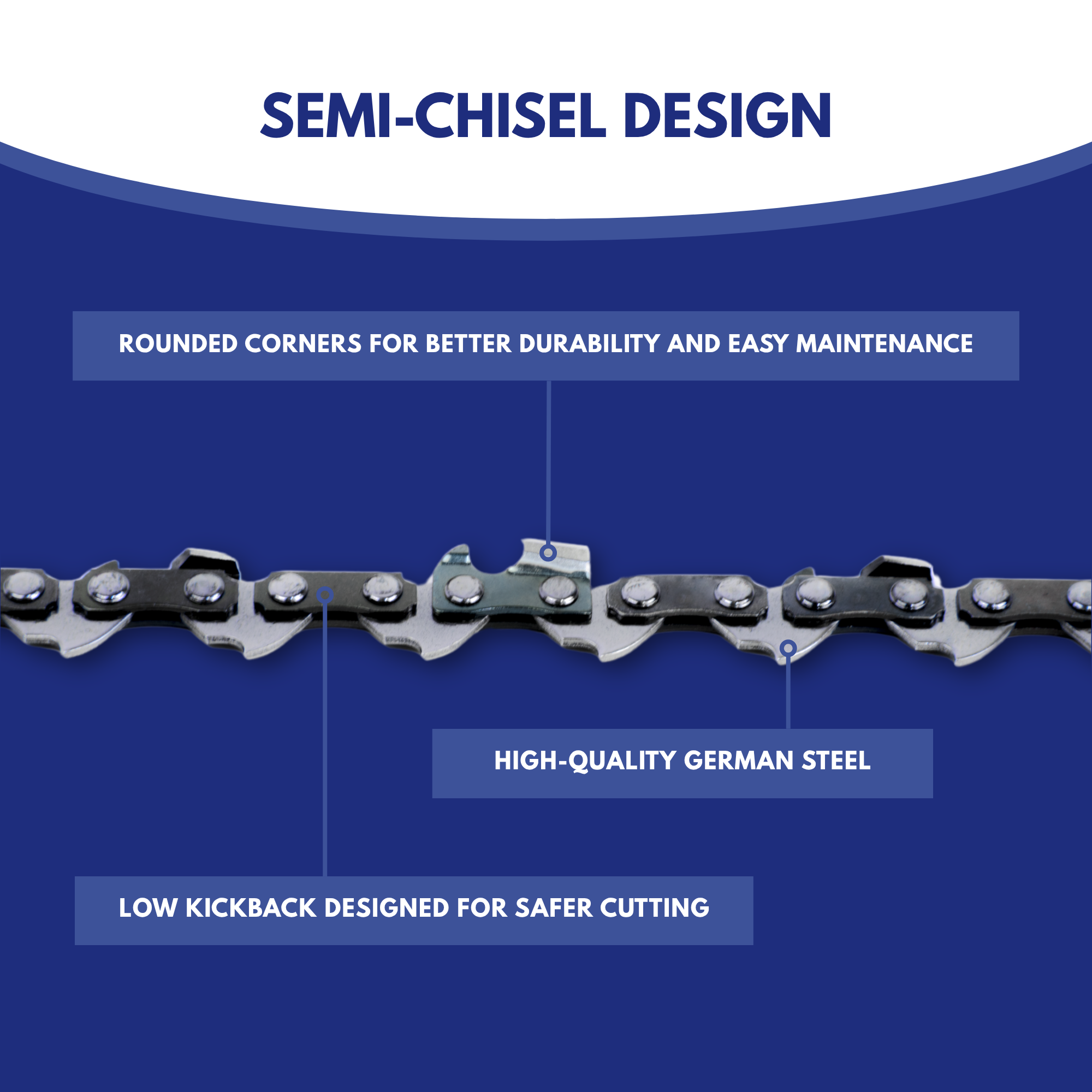 Our low kickback design and reduced vibration levels make Jeremywell an ideal - and dependable - choice for maintaining your property's trees. Homeowners deserve a saw chain advanced enough to tackle tough jobs, but user-friendly enough and forgiving for occasional use.