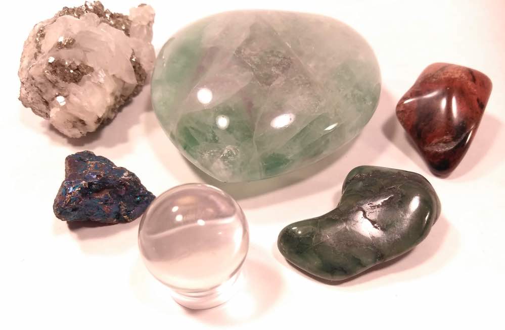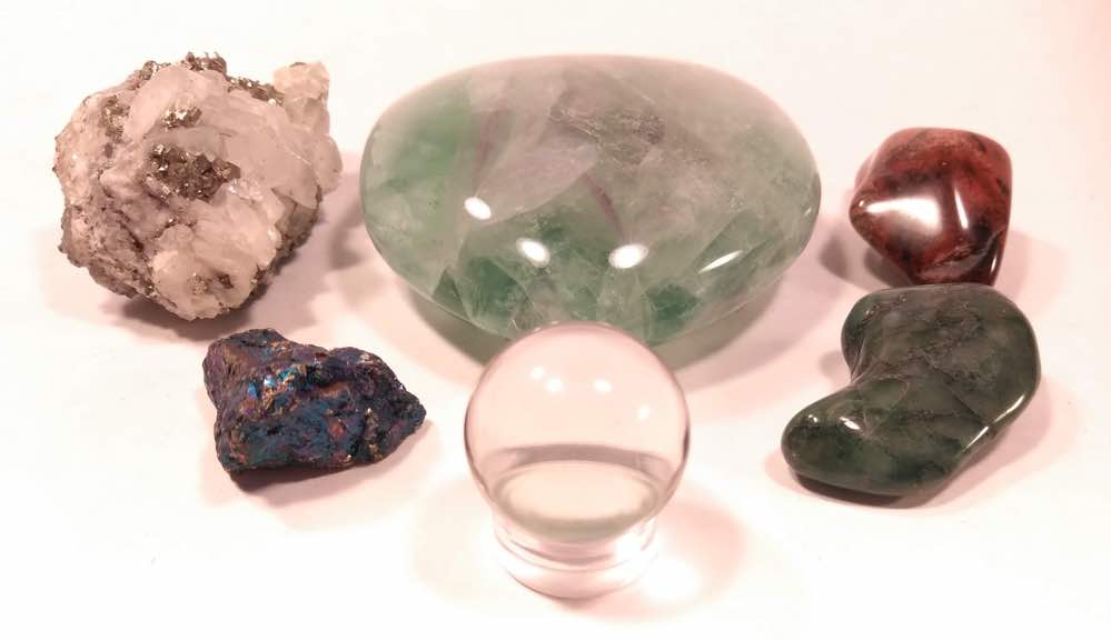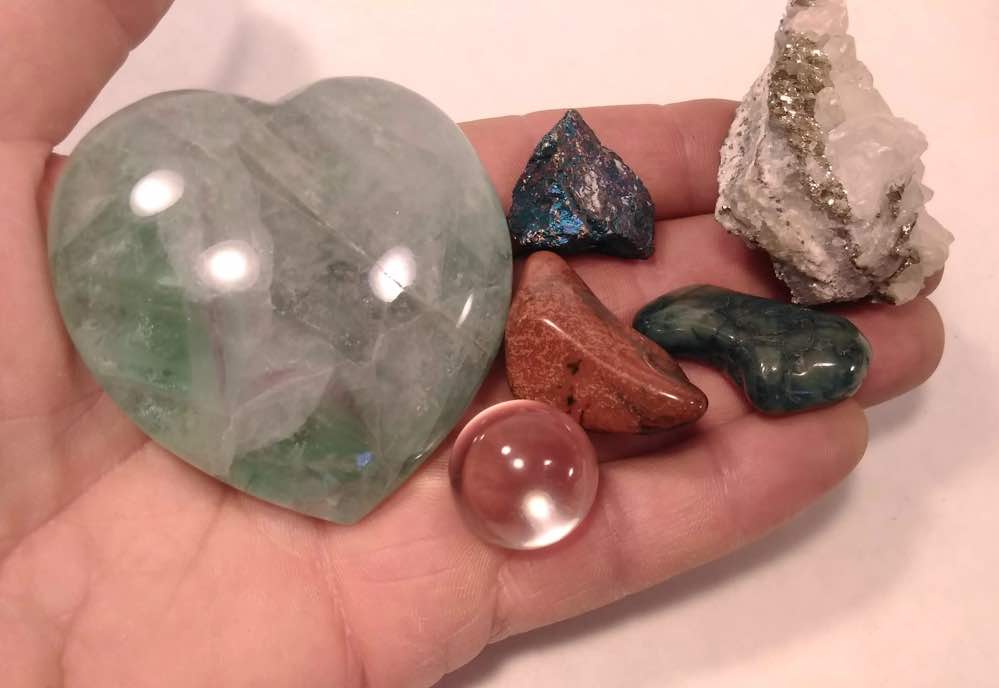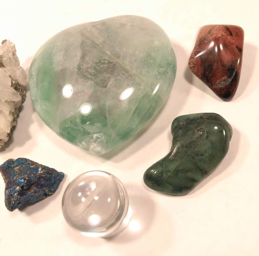 Spectacular Large Green Fluorite Heart + Multi-Mineral Pyrite + Peacock Ore Pyrite Optically Clear Quartz Crystal Ball, Big Sir Jade and Red Brecciated Jasper Stone