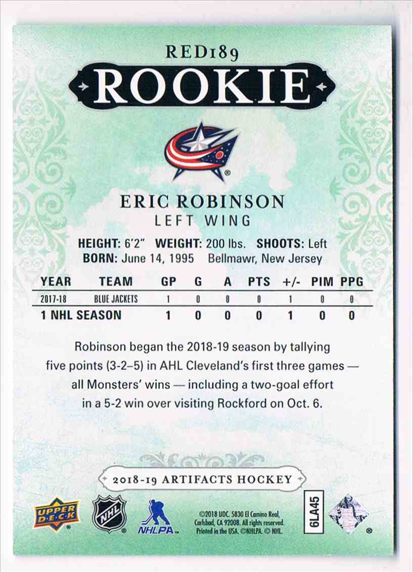 | 2018-19 UPPER DECK ARTIFACTS ROOKIE ERIC ROBINSON 375/799 COLUMBUS BLUE JACKETS | ||||||||||||||||||