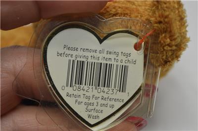 In the middle of the tush tag is a pale heart symbol which is heat activated and disappears when heat is applied. This has been added to help to identify between real and fake Beanie Babies.