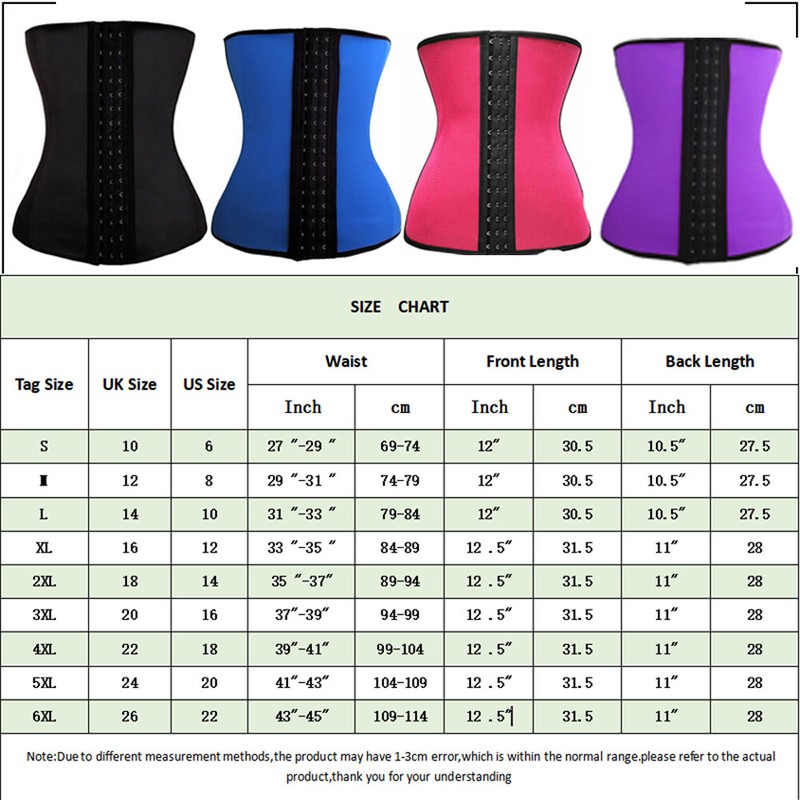 Our latex waist trainer corsets are steel boned to provide more stiffness and support to keep you in best posture. Latex waist cincher trimmer easily adjustable from low to high due to the elastic band to increase the compression while training, shaping and loosing inches