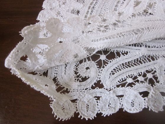 The lace is joined and edged with hundreds of picots and it is a very closed design.