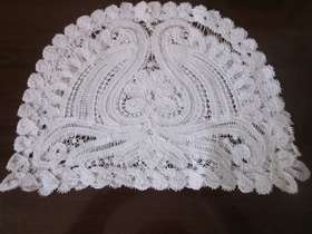 Here is an absolutely exquisite, hand worked, pure white Battenberg lace pot or toaster cover.