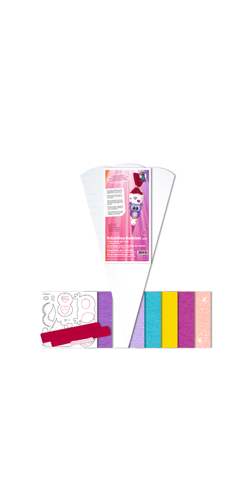 Schultüten-Bastelset aus 3D-Colorwellpappe zum Selbstbasteln und Gestalten.Die 6-eckige Schultüte ist ca. 41 cm groß. Das Bastelset enthält das komplette Material, was zum Anfertigen der Schultüte benötigt wird.