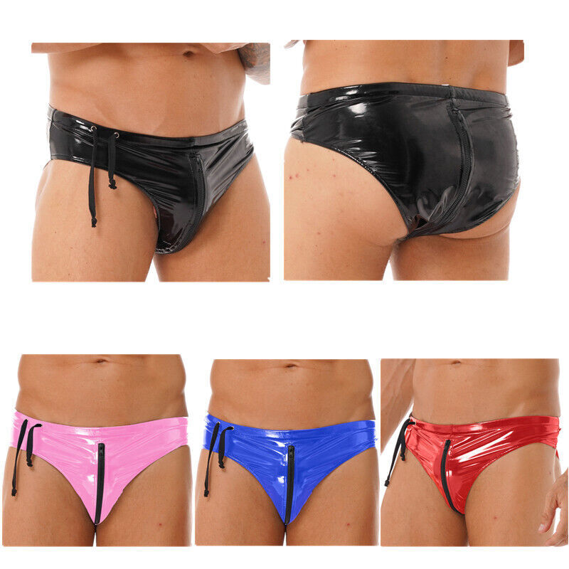 Low-rise with stretchy waistband, front bulge pouch with 2 buttons, open butt design.