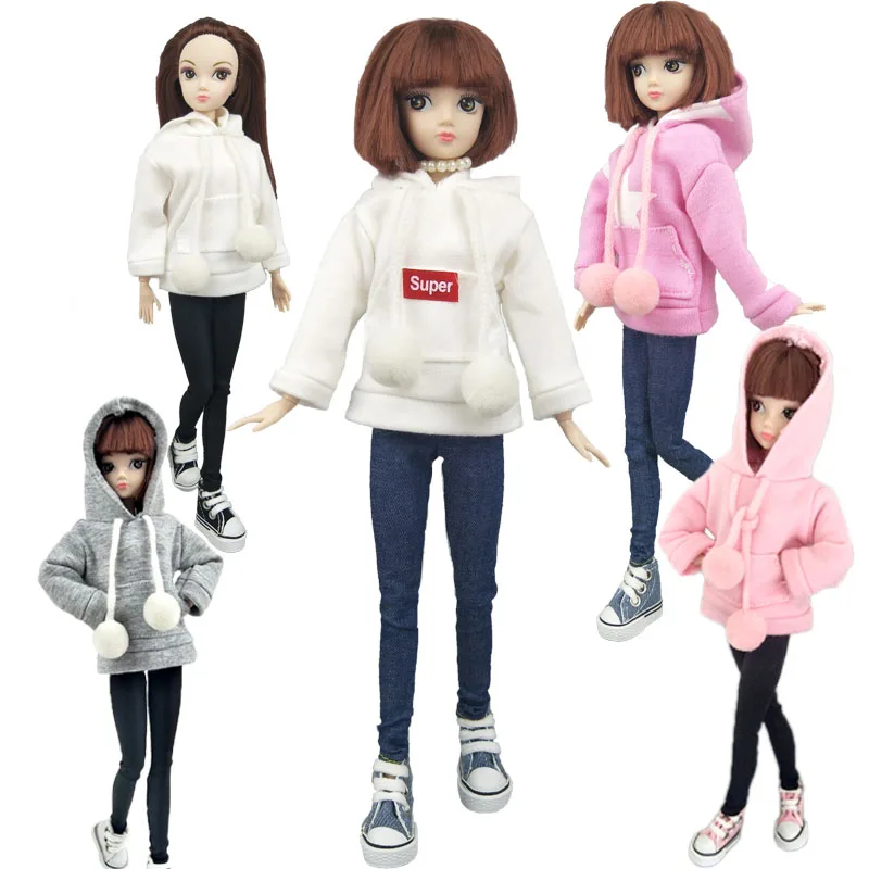Fashion Doll Clothes Sweatshirt For Barbie Doll Clothes Coat For Barbie Doll Outfits Pants Canvas Shoes 1/6 Dolls Accessories