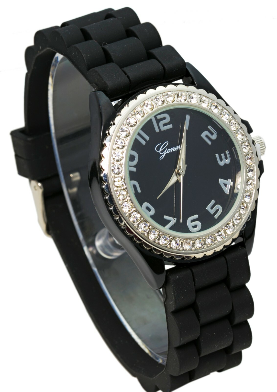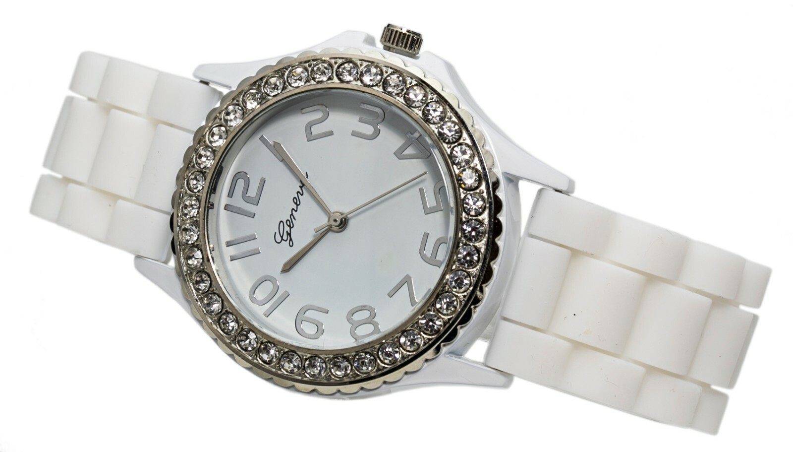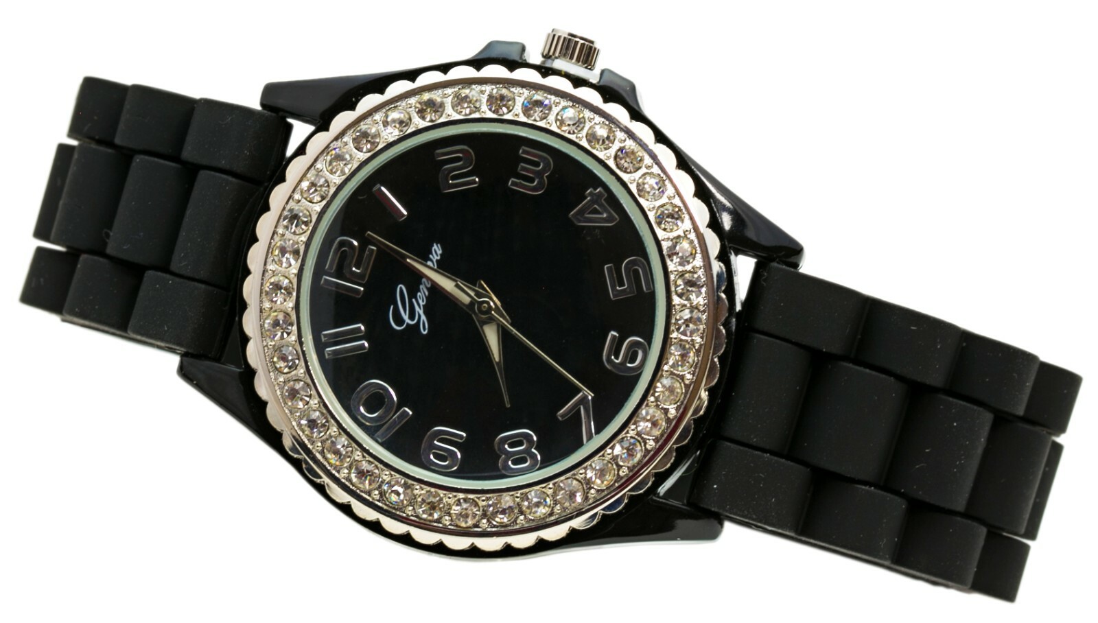 White,Black 2 Pack Geneva Crystal Rhinestone Face Silicone Jelly Band watch