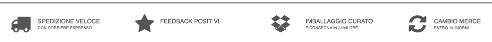 La spedizione viene effettuata entro 1/2 giorni lavorativi, dal lunedi' al venerdi' tramite il corriere scelto dal Cliente (tranne se diversamente indicato nell'inserzione). La consegna dei prodotti avverrà all'indirizzo fornito dall'acquirente nei tempi e nei modi previsti dal corriere espresso (non si risponde di eventuali ritardi dovuti al corriere)