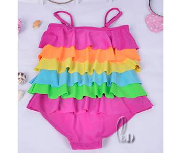AU SELLER Girls Kids Swimwear Layered Rainbow One Pcs Swimsuit Beachwear gs002