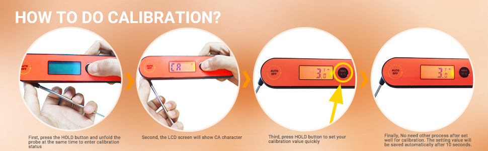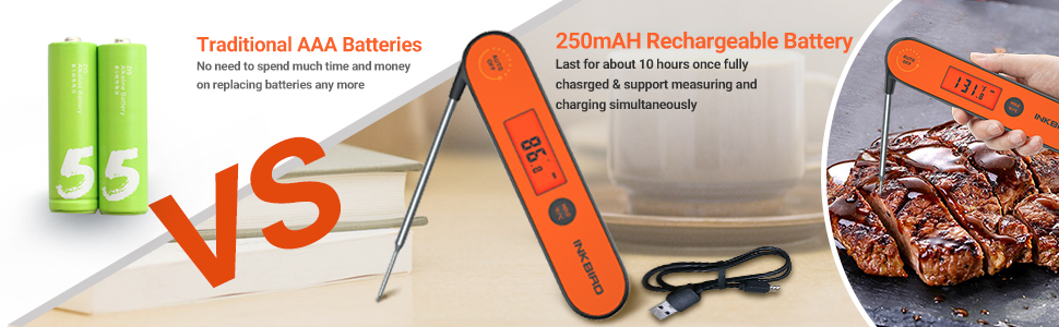 250mAH rechargeable lithium battery of this digital instant pen thermometer could last at least 30-40hours with backlight once fully charged, convenient and save your time and money on replacing batteries; The instant-read meat thermometer will hold the the temperature when just take the unit from the meat