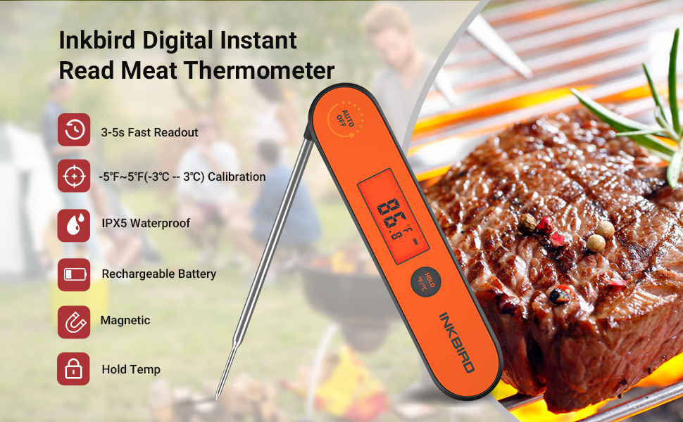 The large dial with LCD backlight means you can always read the temperature, whether you are grilling in the dark or baking in your brightly lit kitchen; IPX5 rated waterproof, the Inkbird food thermometer can be washed under running water without worry.