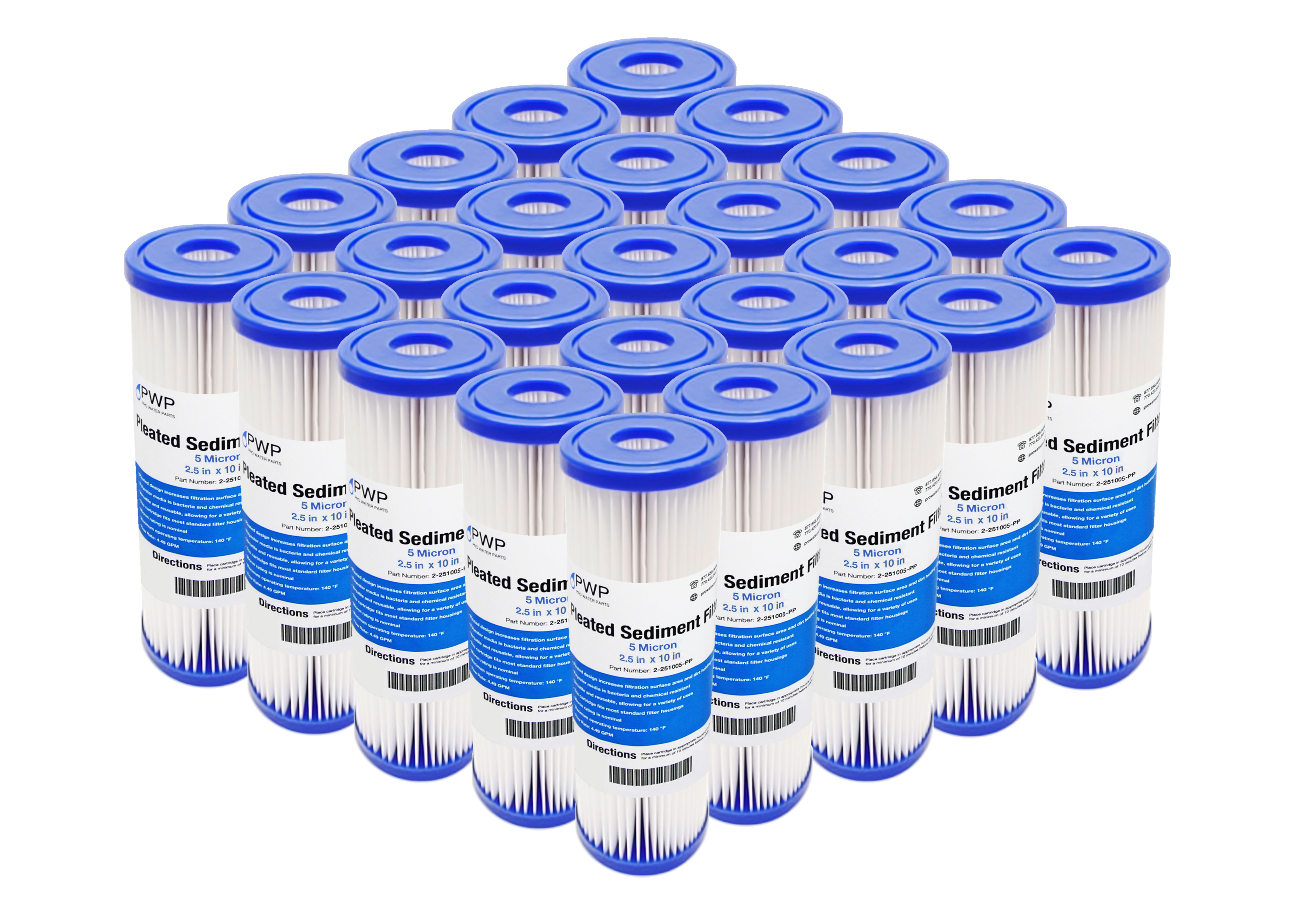 Pleated Poly Sediment Water Filter Cartridge Standard 2.5x10" 5 Micron 25 Pack