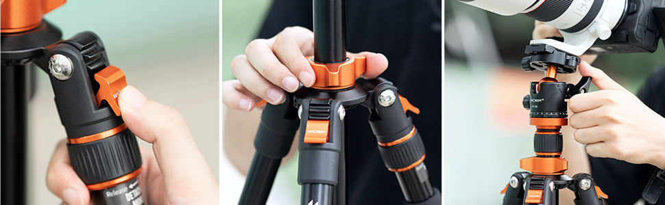 | Quick Flip Leg Lock: Only use one hand can open and close all the buttons in a few seconds. Center Column Lock: The powerful locking force makes it more stable when using the center column to extend the height. |