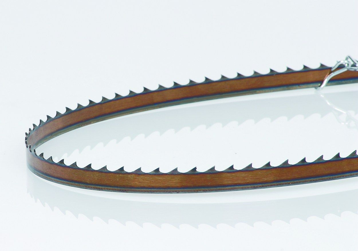 Blade Specifications: 93.5" x 1/2" x 3TPI x .032, .056 kerf; 6.5 degree tooth angle; 2 1/2" cut radius. Cutting Application: roughing or milling green wood/logs. Timber Wolf AS (Alternate Set) tooth-style blades are primarily used by wood turners and wood carvers for roughing out bowl blanks and milling green logs. They are .032 thick, have a full alternate tooth set, a rake angle of 6.5 degrees, and they incorporate the unique geometry of Timber Wolf's PC tooth design. These blades are only available in 3/8 x 3TPI, 1/2x 2TPI and 1/2 x 3TPI. Not meant for use on three-wheel band saws or any saw with less than a 90" blade length or a wheel diameter of less than 14". Suffolk Machinery Corporation, the maker of Timber Wolf band saw blades, manufactures some of the finest woodworking, metal cutting and saw mill blades in the world. They are made from premium Swedish silicon steel and the highest quality alloys. The blade teeth are milled into a piece of strip steel to produce a finished, razor sharp edge without having to stamp or grind the teeth. Finally, the blades are induction hardened, which allows for more precise hardness throughout the blade. The result is a blade with the perfect balance of steel, width, and thickness, with precision set teeth. What this means for you is a superior cutting blade engineered for exceptional performance and long production life. Made in the USA.
