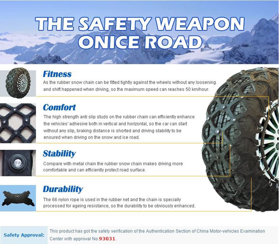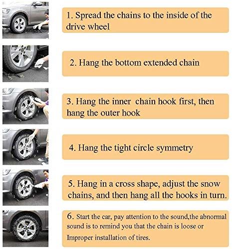 Simple Installation and Removal: Snow Chains, Easy to carry, You can put the tire chains in your trunk and use for any emergency road assistance. No need to take down the tires. and no need to move the vehicle