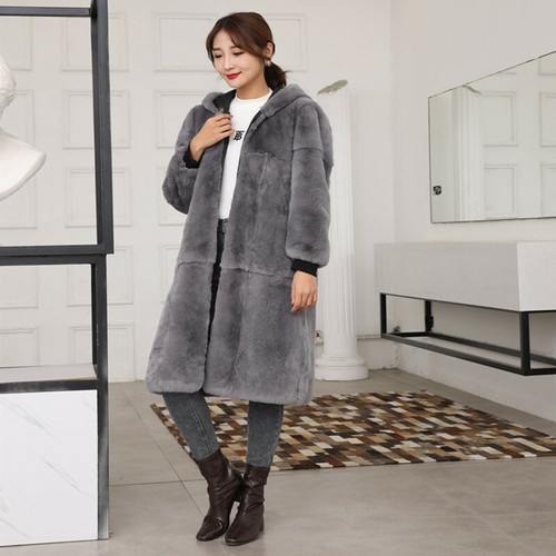 Real Rabbit Fur Lined Outwear Parka Womens Fox Fur Collar Hooded Warm Thick Coat