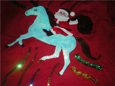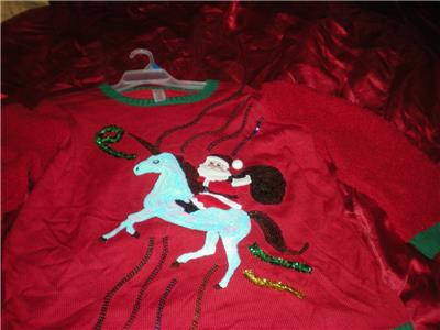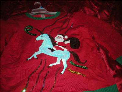 Has SANTA on a UNICORN, Toteing a Big Bag