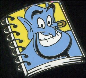 Magical Mystery Series 13 Genie is one of 6 pins available in this series. Aladdin's Genie is pictured on a yellow ring-bound notebook. He is smiling widely with his signature earring and beard.