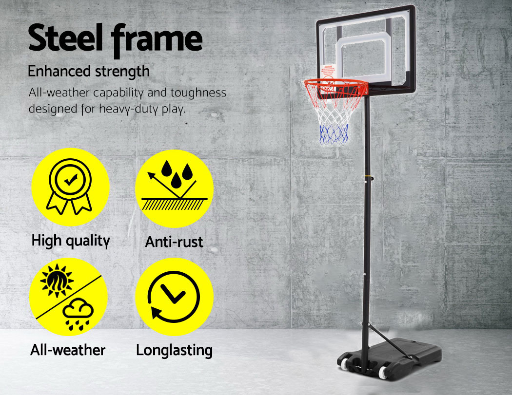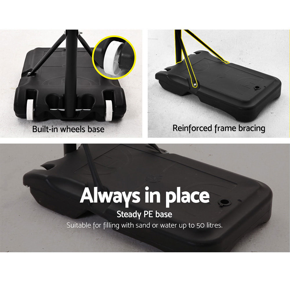 Featuring a mega-tough steel frame, the 32” Basketball System provides an instant set up that is suitable for kids and youth, junior players and grown-ups alike. It can be adjusted to your preferred height of between 1.6m and 2.1m. The regular-size shatterproof 32” backboard is made from durable PVC and looks and plays like pro-style glass while the massive 50L capacity base fills easily with water or sand to provide a stable foundation. Not least, the roller wheels makes for easy maneuverability and the included nylon net is nice touch.