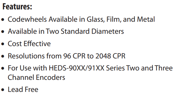 and budgets, Avago Technologies’ codewheels are available in Glass, Film, and Metal. These codewheels are