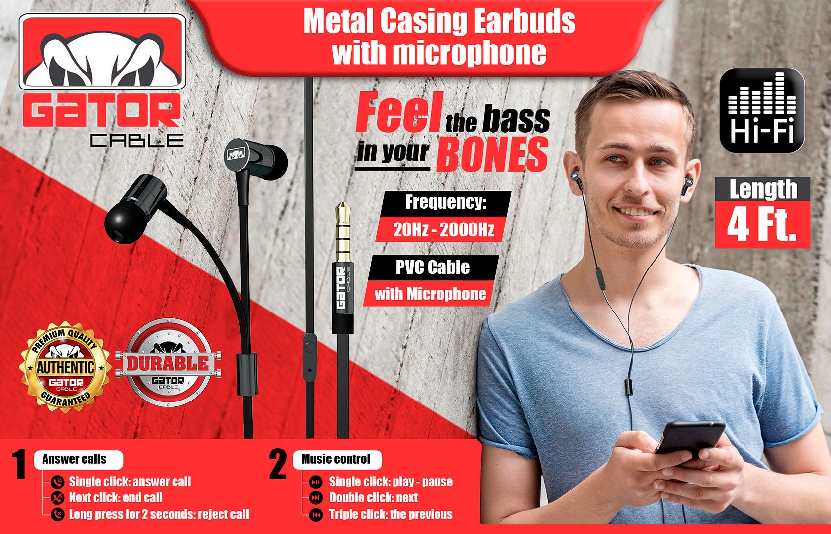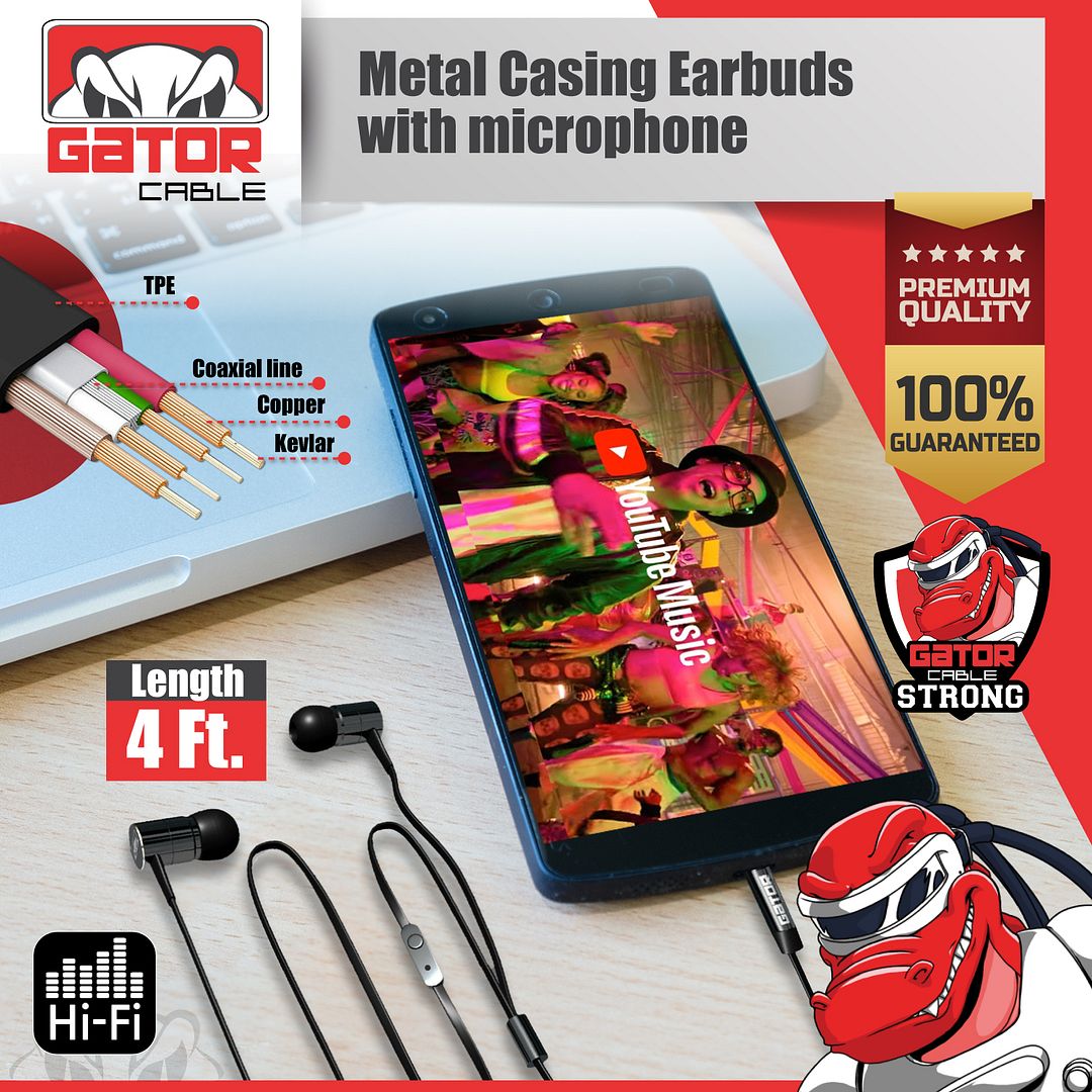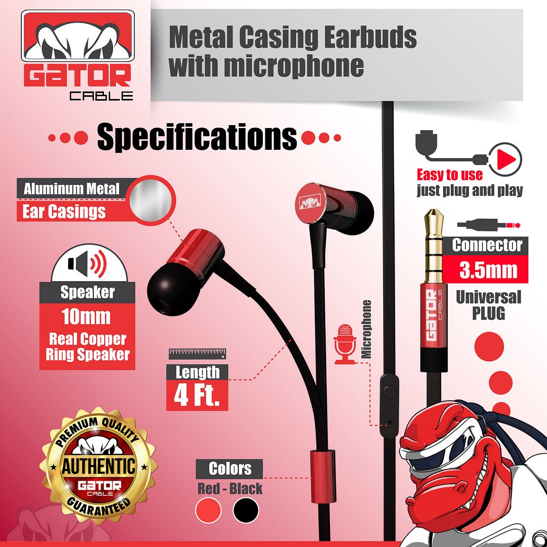 ![]() ![]() Gator Cable Wired AUX 3.5mm Metal Casing Earphones 4FT Specifications: Gator Cable Stereo Hi-Fi Earbuds Impedance: 32 ohm Sensitivity: 100db+/-5db Frequency: 20Hz - 2000Hz Speaker: 10mm, Real Copper Ring Speaker Connector: 3.5mm universal plug Length: 4 Ft Aluminum Metal Ear Casings PVC Cable with Microphone Included in Package: 1 x Wired AUX 3.5mm Earphones 4FT